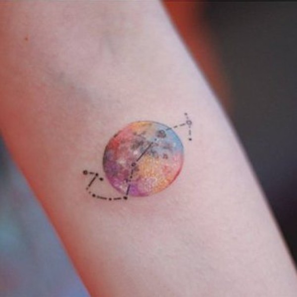 一组炫彩色星空星球宇宙相关的纹身图案作品