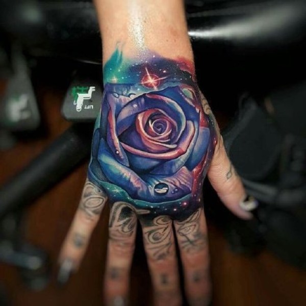8张手背部的炫彩写实玫瑰花纹身作品