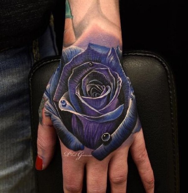 8张手背部的炫彩写实玫瑰花纹身作品