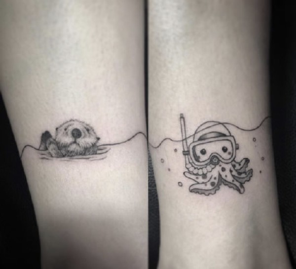 章鱼和竖琴,海洋主题胸前和后背纹身