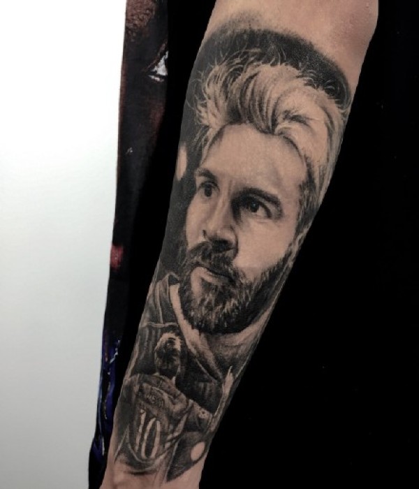 球星梅西手臂肖像纹身