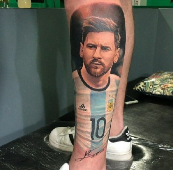 足球健将梅西小腿个性纹身