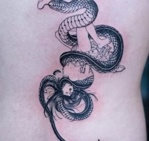 性感美女大腿部细腻漂亮的蛇纹身图片