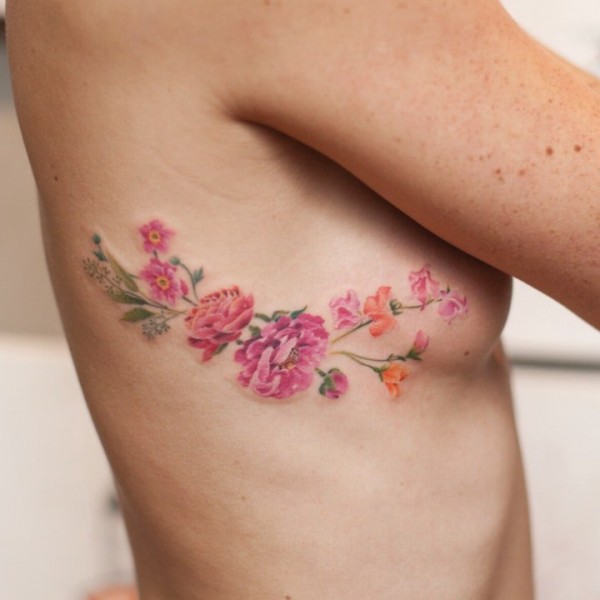 性感花朵纹身--女性大腿侧部性感的花朵纹身