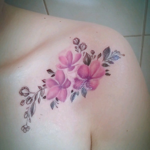 肩花纹身--一组适合肩部的黑灰肩花纹身图案欣赏
