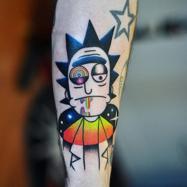 电影角色的彩色花臂花腿new school风格的纹图案