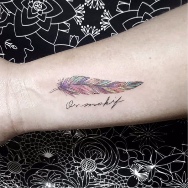 纹身 彩色羽毛 多款轻柔而又美丽的水彩羽毛纹身图案