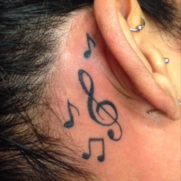 耳朵背后的音符纹身