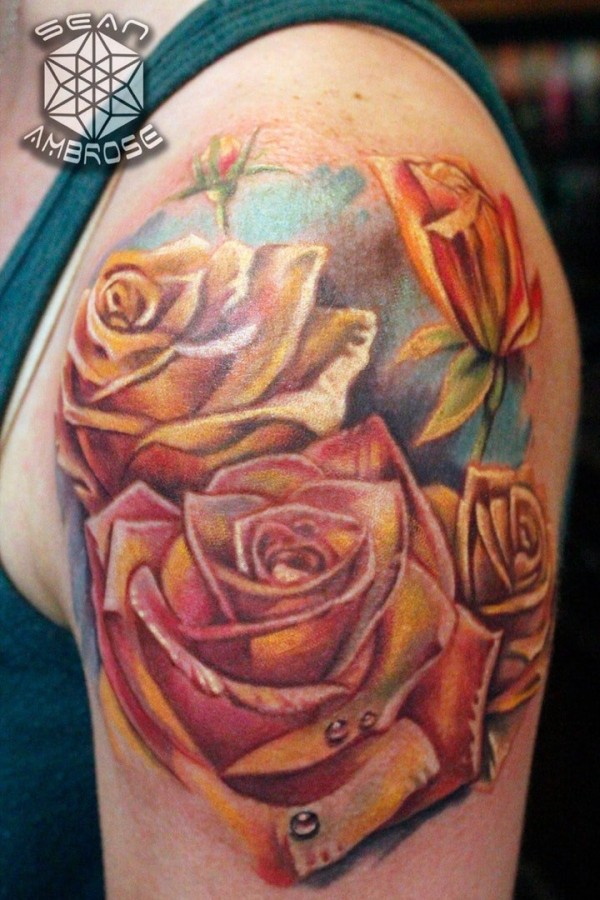 玫瑰纹身图 艳丽动人而又色彩鲜艳的玫瑰纹身图案