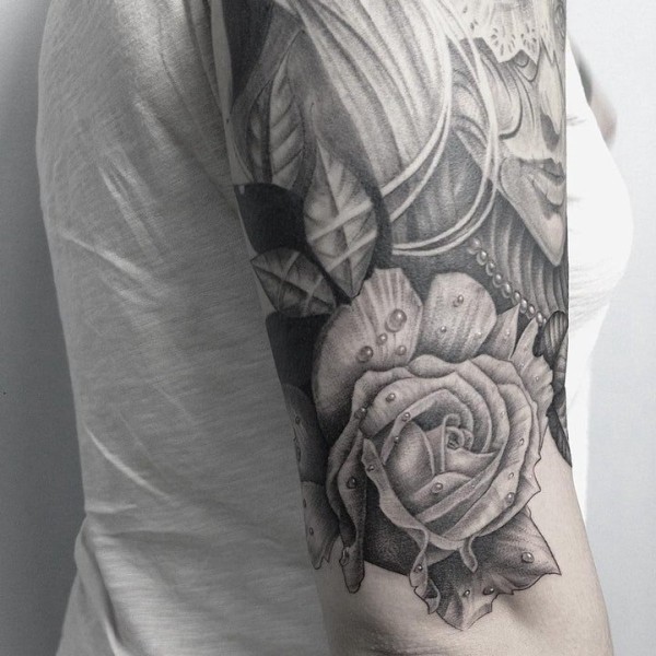 娇艳玫瑰手臂纹身_玫瑰花纹身图案大全_纹身图吧