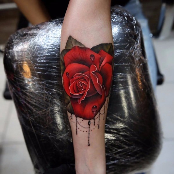 娇艳玫瑰手臂纹身_玫瑰花纹身图案大全_纹身图吧