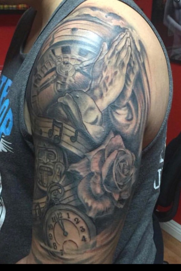 各种乐器等元素的音乐主题纹身图案