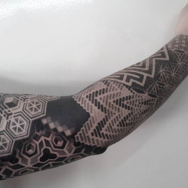 欧美花臂纹身_22张霸气黑灰欧美大黑花臂纹身图案作品图片