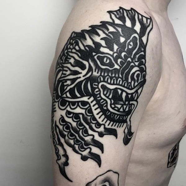新传统风格的9张男性黑灰大满背纹身图案图片