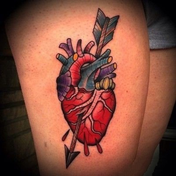 心脏纹身图案 身体各个部位彩绘纹身和写实纹身的心脏纹身图案