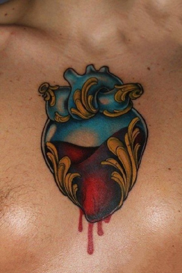 心脏纹身图案 身体各个部位彩绘纹身和写实纹身的心脏纹身图案