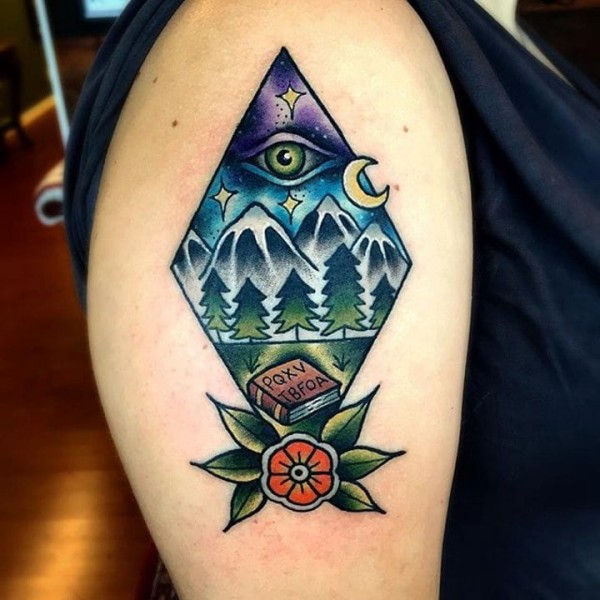 彩色风景纹身--一组几何图形+彩色的小风景纹身图案欣赏