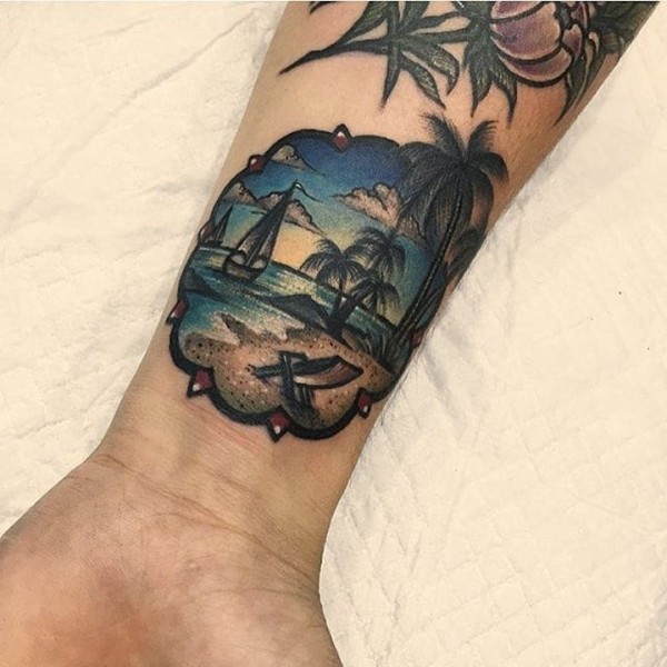 彩色风景纹身--一组几何图形+彩色的小风景纹身图案欣赏
