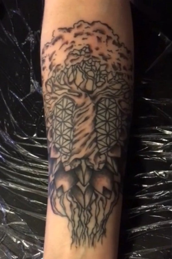 森林树木纹身图案_一组手臂上黑灰树木森林纹身图案作品