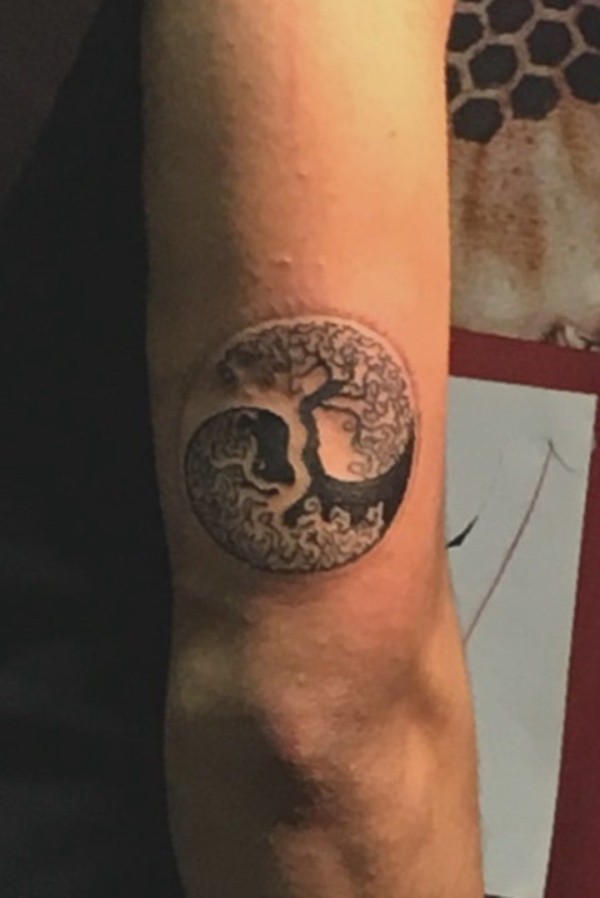 森林树木纹身图案_一组手臂上黑灰树木森林纹身图案作品
