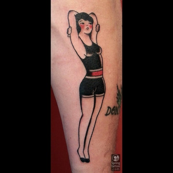 oldschool小女孩纹身:oldschool风格的一组小菇娘女孩纹身图案