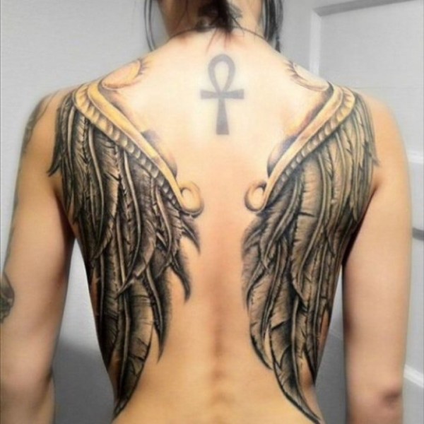 男生背部翅膀十字架纹身_翅膀纹身图案大全_纹身图吧