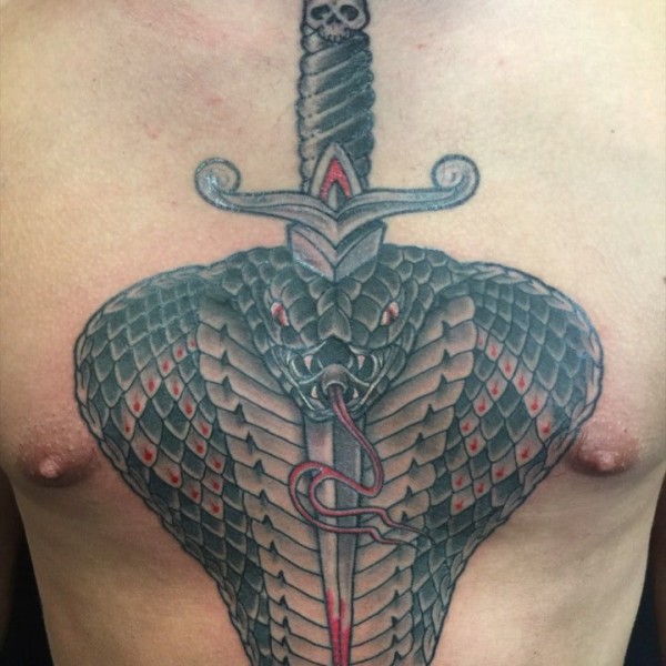 蛇绕匕首school彩色纹身图案手稿