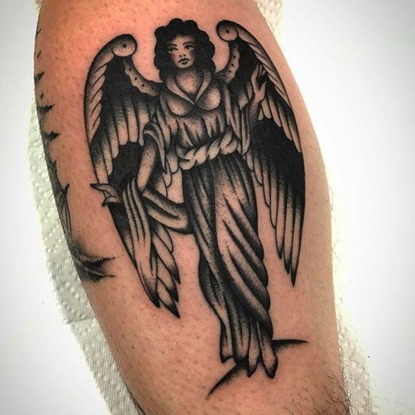 腿部黑灰天使纹身图案_天使纹身图案大全_纹身图吧