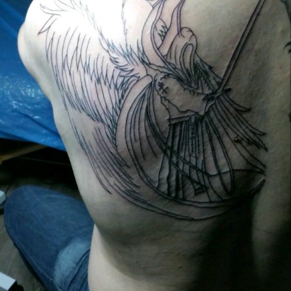 天使翅膀纹身图案 多款黑灰色调带翅膀的天使纹身图案