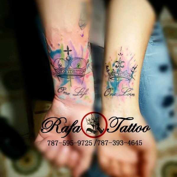 适合情侣的一组成对的皇冠纹身作品