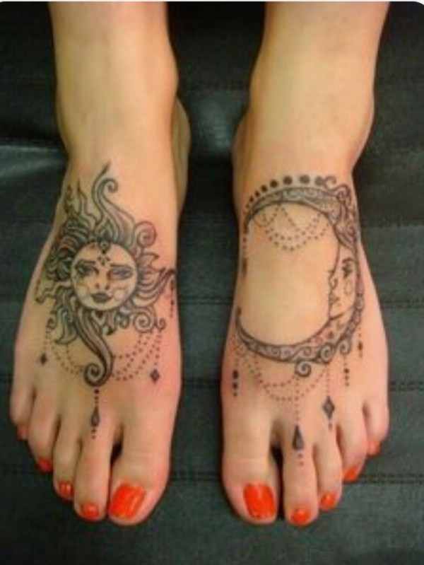 日月纹身--很适合情侣的太阳月亮的成对日月纹身图案