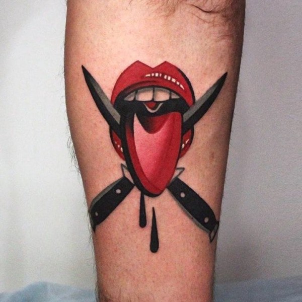 嘴唇纹身 女生手臂上彩色的嘴唇纹身图片