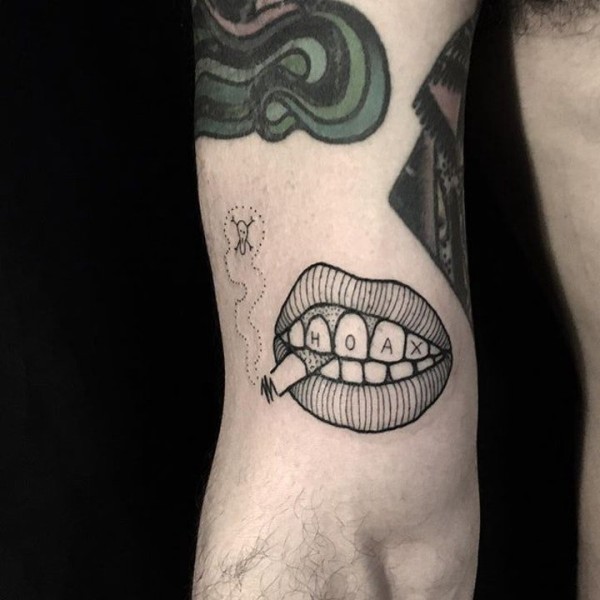 嘴唇纹身 女生手臂上彩色的嘴唇纹身图片