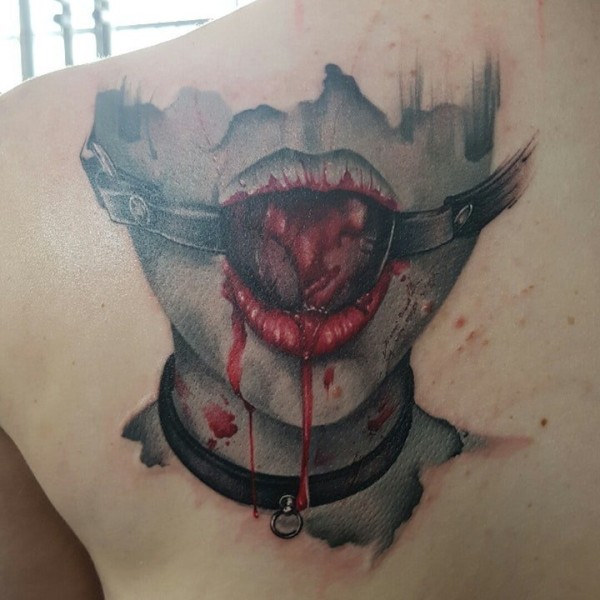 锁骨下的红红嘴唇纹身图片让人羡慕