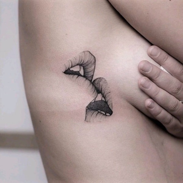 厚实性感的几何简单个性线条创意嘴唇纹身图案