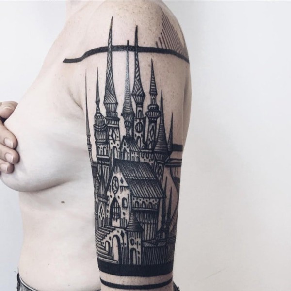 建筑物纹身 多款造型奇特的建筑物纹身图案