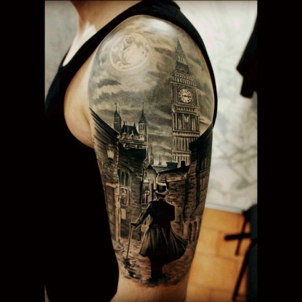 风景纹身图案 10组彩绘或黑灰色调的风景纹身图案