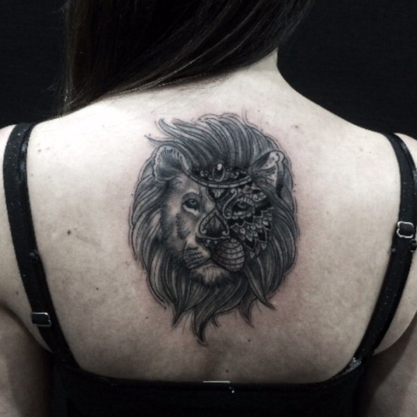新传统风格的9张男性黑灰大满背纹身图案图片