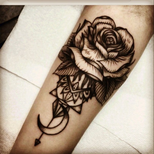 心脏纹身图案 女生手臂上黑灰纹身心脏纹身图案