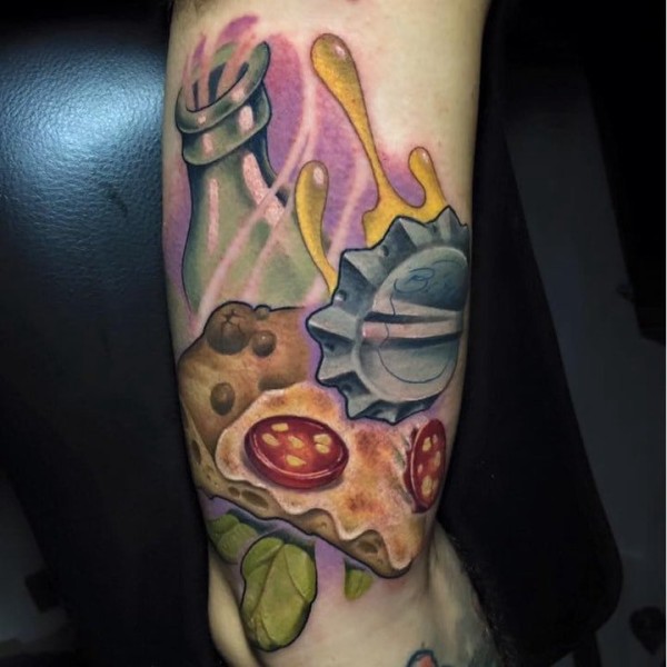 油画风格纹身 男生大腿上彩色的油画风格纹身图片