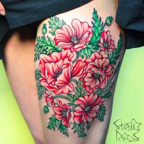 逼真的超现实主义花纹身图案来自纹身师莫拉莱斯
