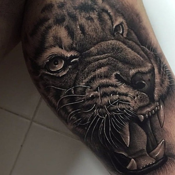 花腿纹身--一组大黑腿纹身图案作品欣赏
