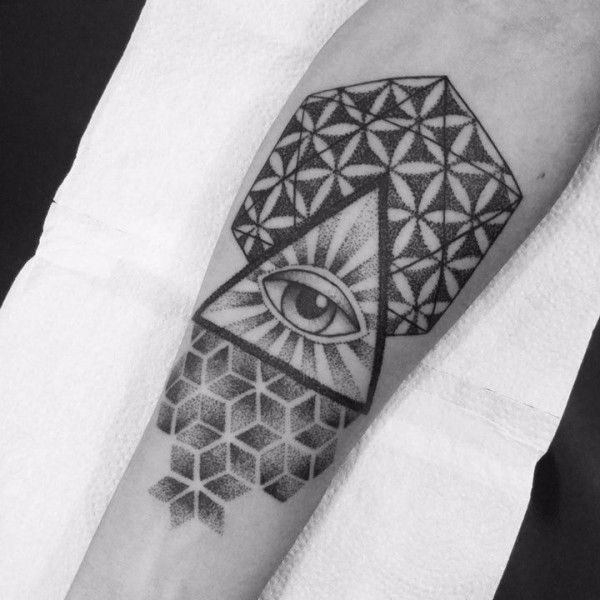 纹身眼睛纹身图案 男性手臂上穿透灵魂的黑色素描纹身眼睛纹身图案