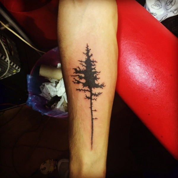 森林树木纹身图案_一组手臂上黑灰树木森林纹身图案作品