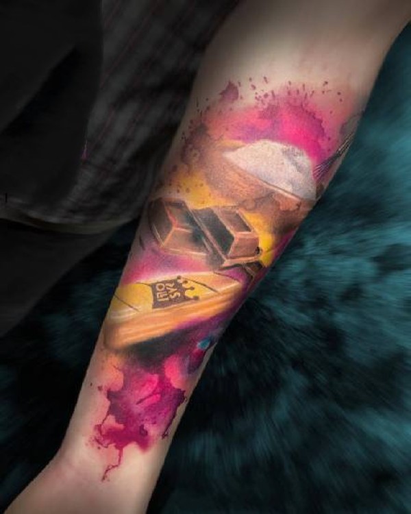 9张胳膊小臂上的暗色水彩纹身图片