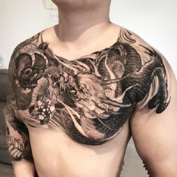 花胸纹身--一组男性霸气的大花胸纹身图案作品欣赏