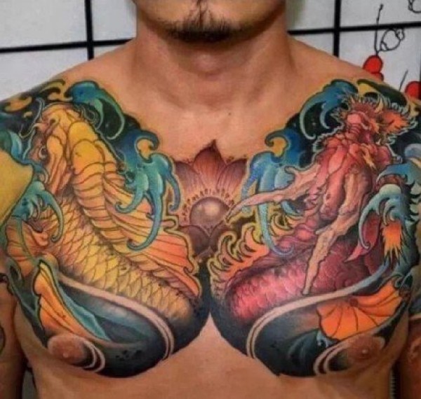 花胸纹身--一组男性霸气的大花胸纹身图案作品欣赏
