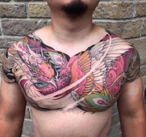 花胸纹身--一组男性霸气的大花胸纹身图案作品欣赏