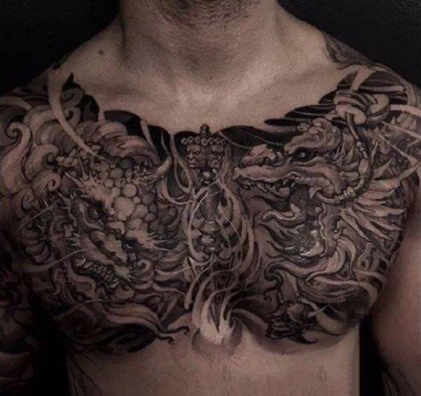 花胸纹身--一组男性霸气的大花胸纹身图案作品欣赏