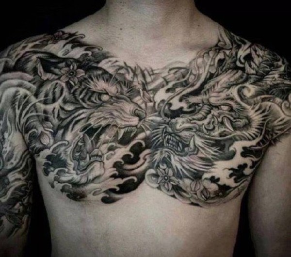 花胸纹身--一组男性霸气的大花胸纹身图案作品欣赏
